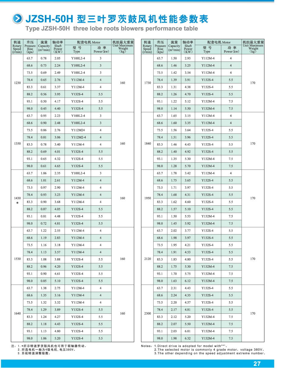 JZSH-50H型高壓型羅茨鼓風(fēng)機(jī)